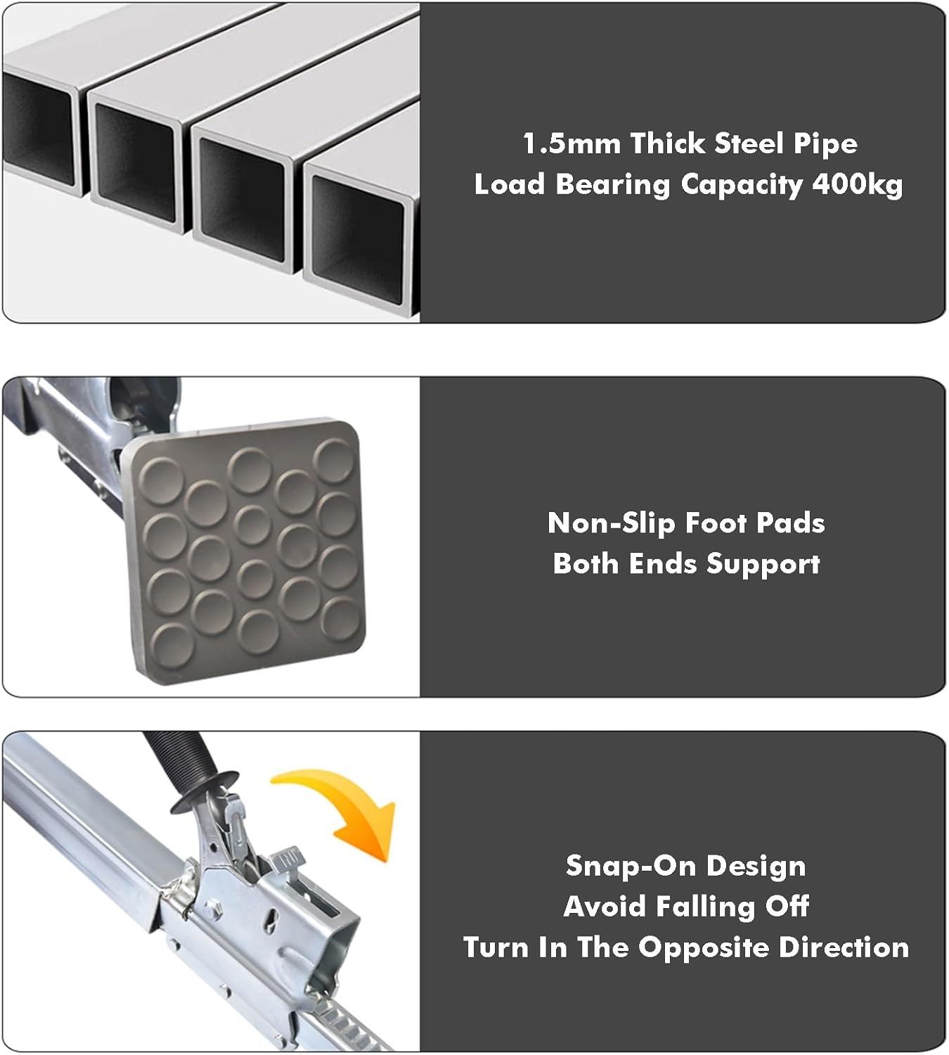 Our adjustable cargo bar is the perfect choice! A safe and versatile transportation solution.This telescopic loading lock bar provides a strong safeguard in front of your cargo, preventing it from shifting during transport and ensuring its safety.Product Name: Adjustable Ratchet Cargo Lock Bar/Pickup Truck Cargo Lock Bar/Cargo Stabilizer Bar/Truck Cargo Divider Bar/Steel Trailer CrossbarMaterial: SteelBar Diameter: 3.8 cm (1.5 inches)Load Capacity: 200 kg/441 lbsAssembly Required: NoIt is ideal for passenger cars, SUVs, mini-trucks, pickups, etc. Prevents cargo from shifting.Features:1. Safety clamps ensure a secure lock, preventing accidental loosening.2. Prevents dangerous interference, ensuring safe transport of a wide variety of items from heavy equipment to leisure gear and groceries.3. This lightweight cargo lock bar can be easily stored when not in use.4. It secures cargo in place, preventing it from shifting within the trailer.5. Can be used as a cargo divider when a trailer needs to transport goods to different locations.6. This is a stabilizer bar to prevent cargo from sliding into the truck cab.7. Spring design provides shock absorption.How to choose the right size?Measure the length and width inside the truck bed.Compare (Truck bed interior dimensions - divider size chart)How to install?Grasp the clips and rotate the handle in the opposite direction.Pull out the bracket so that the two anti-slip pads are supported on both sides of the truck bed door (the anti-slip pads should be flush against the truck bed door).Package Contents1 x Cargo Stabilizer Bar1. Manual measurement may have an error of 1 cm. Please refer to the actual size.2. Due to factors such as monitor display and lighting, there may be slight color differences between the picture and the actual product.