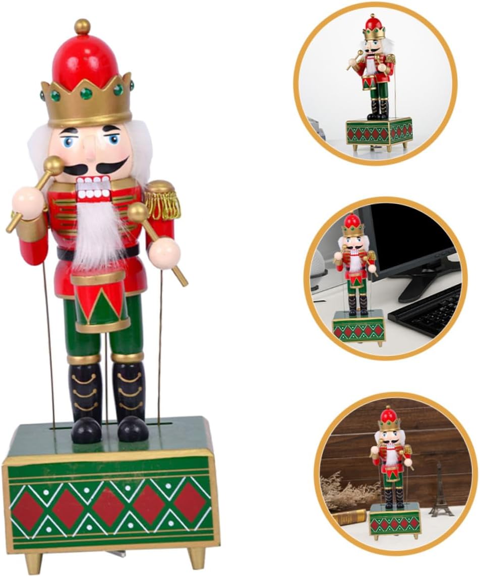 Package Include 1 x nutcracker music box Features - Size: 31.00X11.50X9.50cm/12.18X4.52X3.73in -Product Info:Nutcracker Music Box -Material:Wood -Iconic christmas figure: the nutcracker is a classic symbol of christmas, bringing joy and festive cheer to any setting wood nutcracker music case -Easy to use: the windup design makes sure that the music box is simple to operate, providing delightful music with minimal effort for music lover -Charming design: the drumplaying nutcracker is a charming and unique design, suitable for adding a festive touch to your decor musical adorn -Intricate details: this nutcracker is crafted with precision, highlighting the beauty of its intricate details xmas supplies -Color:Red -Ideal present: this nutcracker music box is an for a christmas or new year present, sharing your festive wishes with loved ones the nutcracker decorGoods Description for xmas Add a touch of elegance to your holiday decor with the nutcracker centerpieces for tables.xmas Suitable for xmas supplies, this piece is a delightful present for anyone who loves the charm of Christmas.nutcracker figure with drum This wooden music box features a nutcracker figure with a drum, hand-painted to perfection