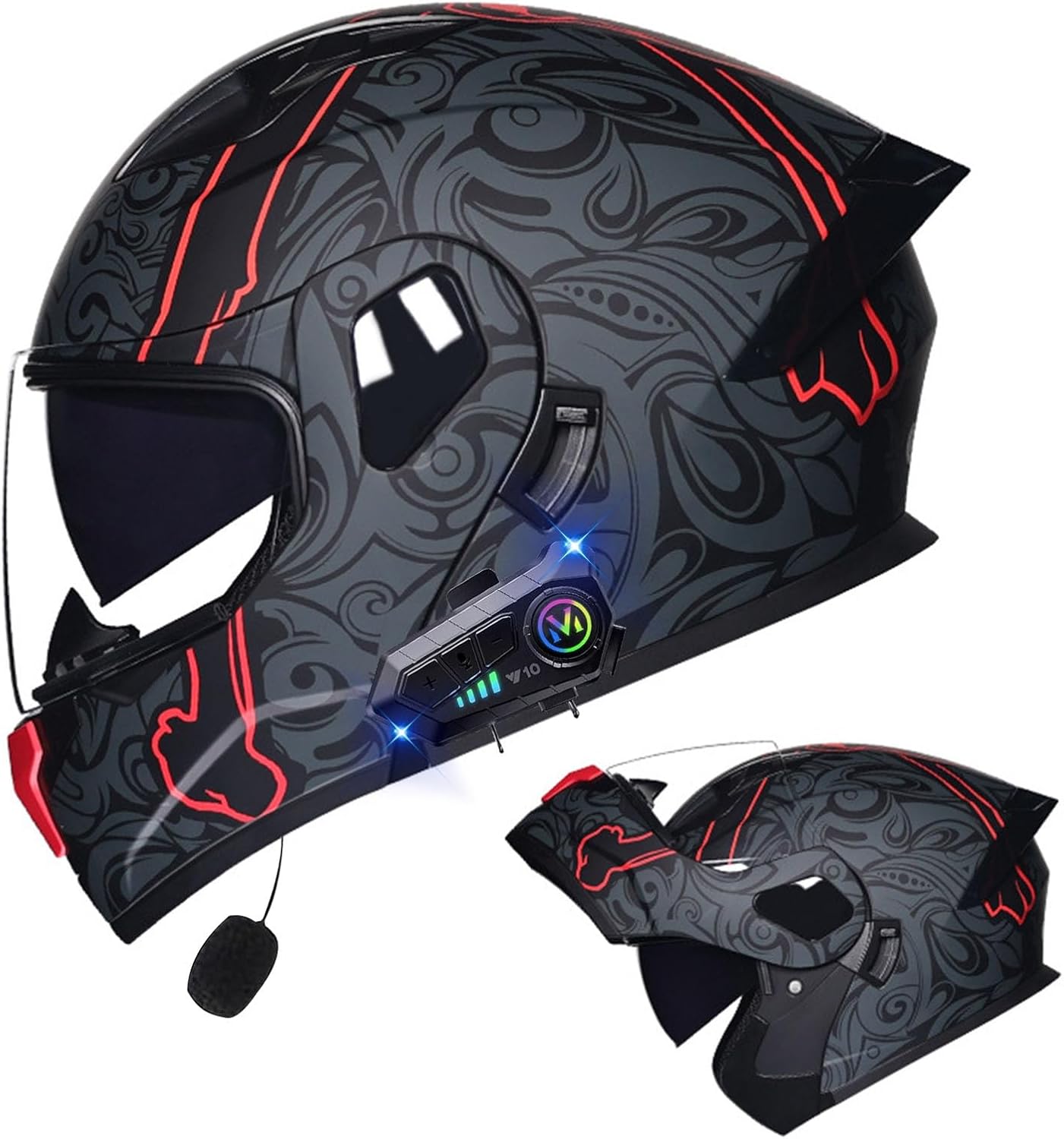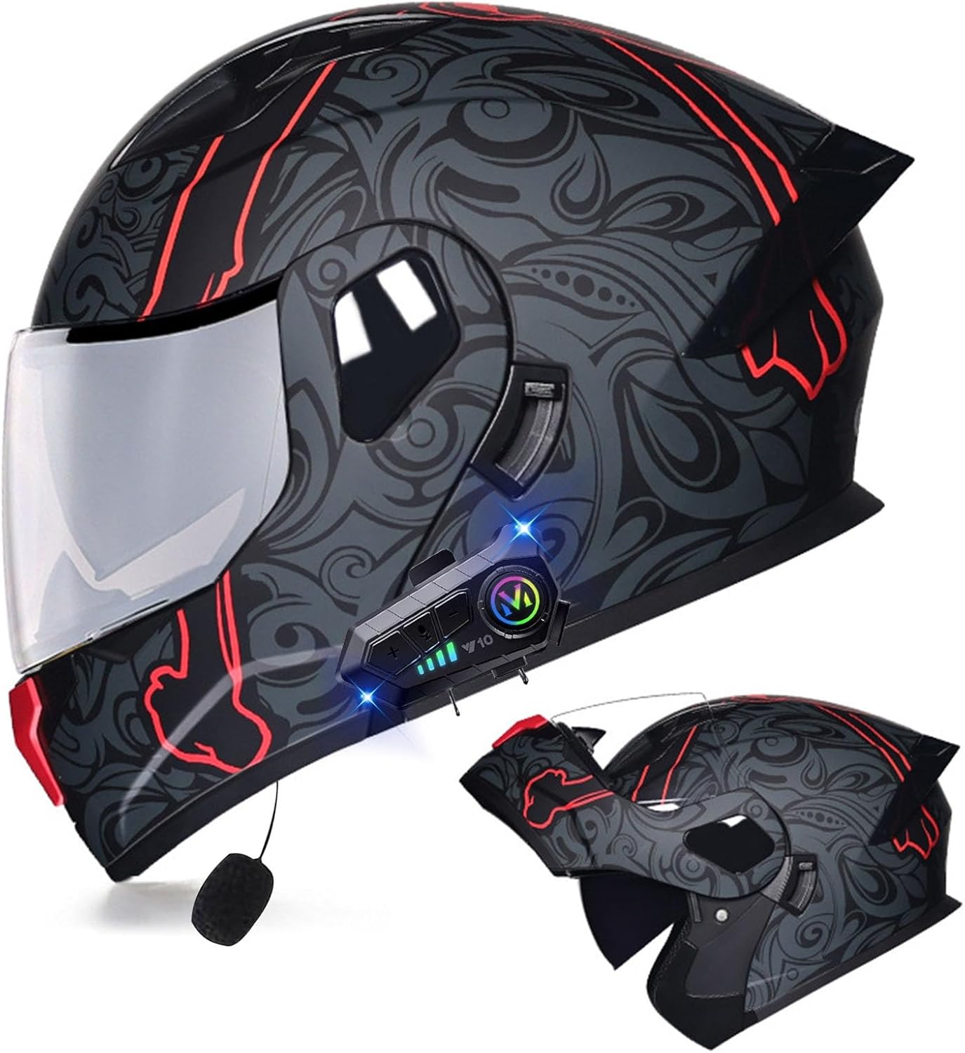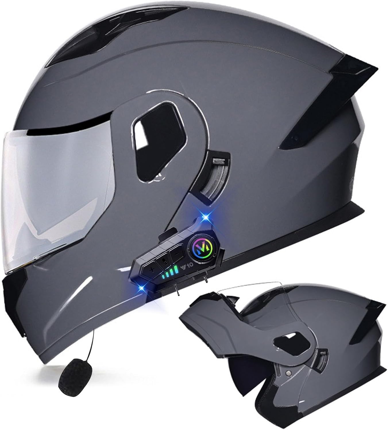 Our helmet has excellent protection. It can provide you with the greatest degree of safety when riding outdoors, so that you can enjoy riding.We are also equipped with a professional online service team to solve the problem for you the first time, so that you have no worriesIn order to protect the helmet and Bluetooth, the package you receive is Bluetooth and the helmet are packaged independently, you can choose to install or not install according to your preference. If you have any questions that you don’t understand, please feel free to contact us and we will solve it for you immediately.Product details:Type: Modular Bluetooth HelmetMaterial: Sturdy and durable ABS shellBuffer layer: High-strength EPS buffer layerWeight: 1400gSize: M (57-58cm/22.4-22.8in),L (59-60cm/23.2-23.6in) ,XL (61-62cm/24-24.4in),XXL(63-64cm/24.8~25.2in)Safety certification: DOTScope of application: Unisex Four Seasons GeneralRecommended Uses For:for motorcycle, cruiser, touring, bicycle and scooterBluetooth parameters:1. Bluetooth version:V5.3+EDR2. Transmission distance: 20M3. Lithium battery:1000mAh4. Charging time:20 min5. Standby time:18 months6. Continuous working time:about 32 hoursPackage:Motorcycle Helmet*1Bluetooth Headset Set *1If you are satisfied with my product, I hope you can give us a comment. This is important not only to me, but also to other friends who need this product.If you have any questions, please contact us in time, We will solve the problem for you within 24 hours