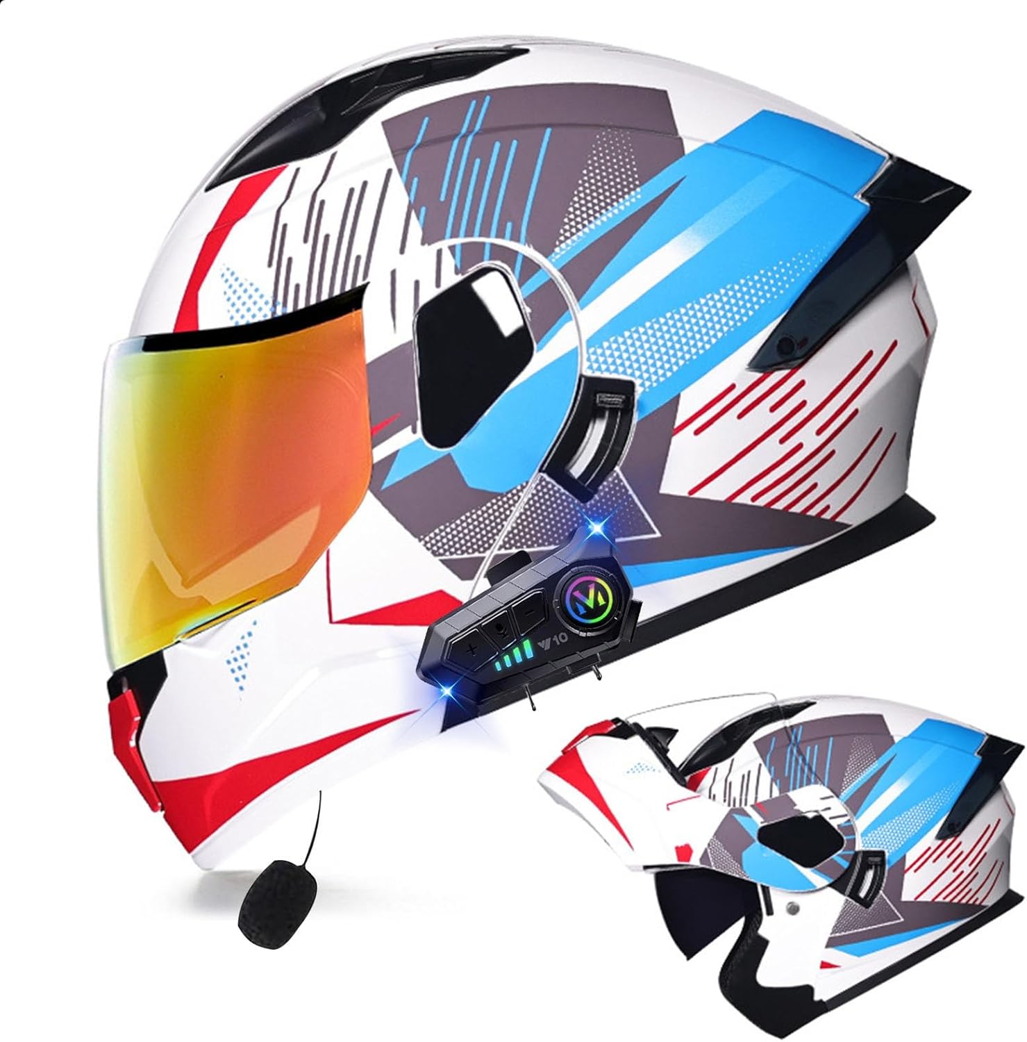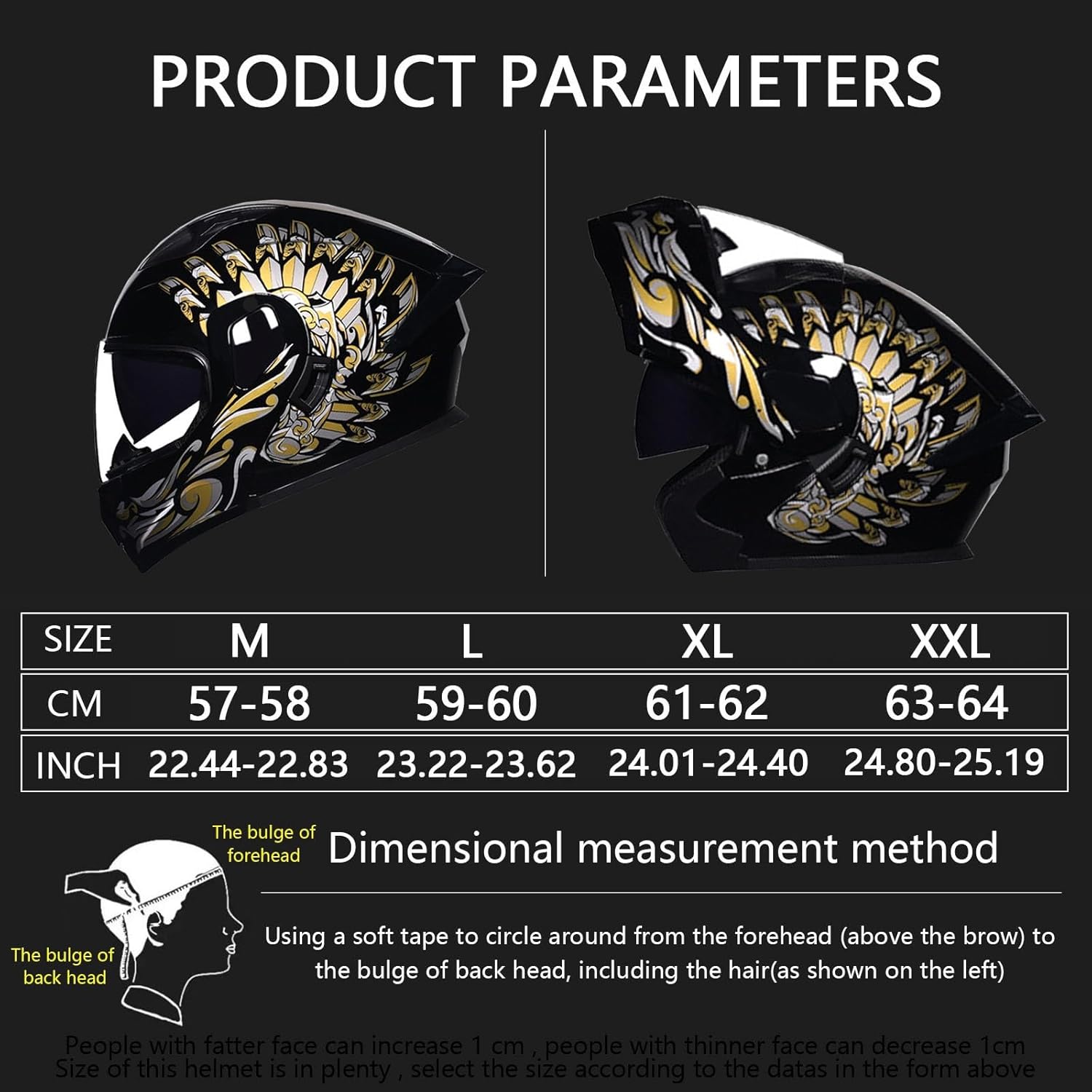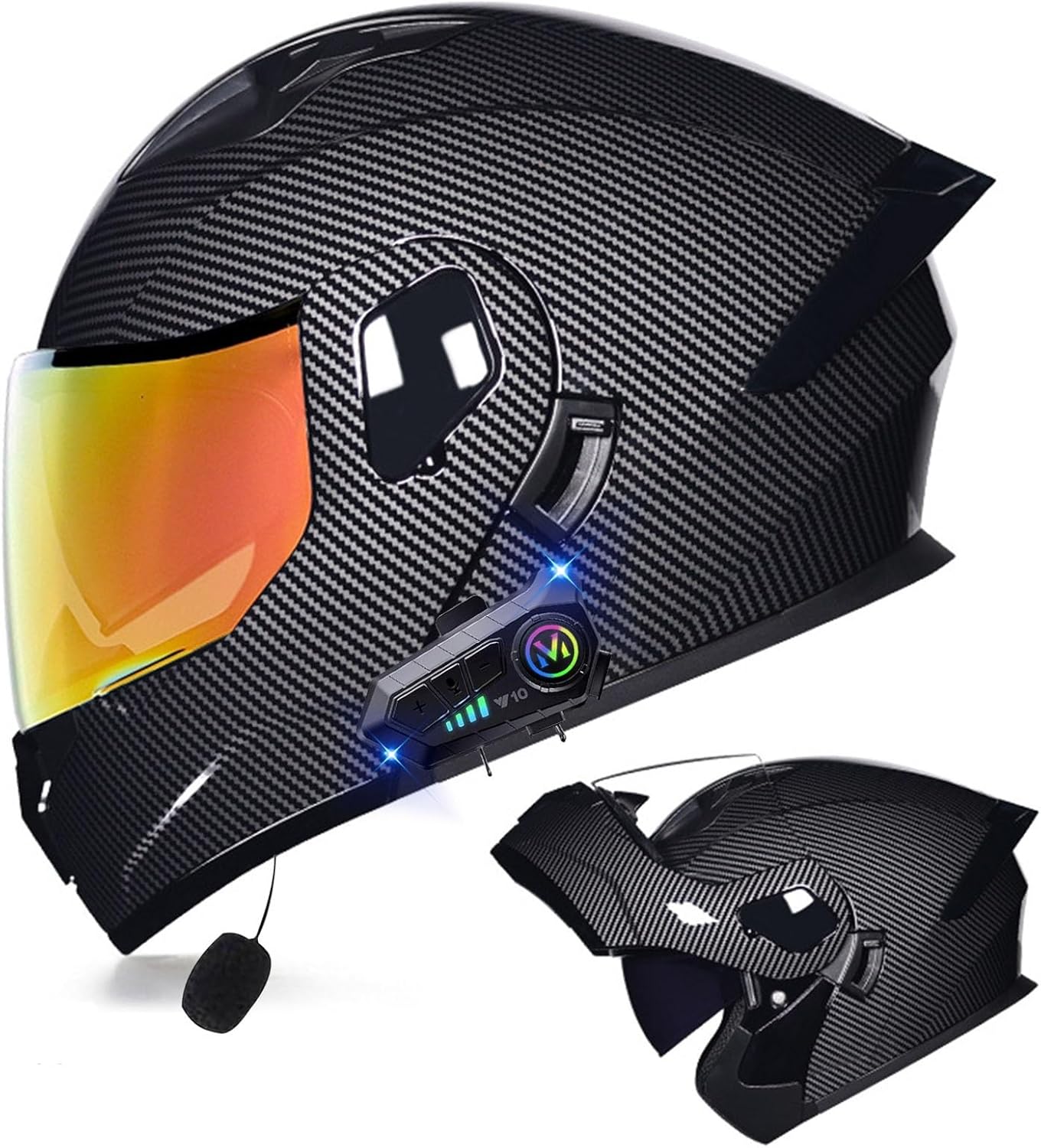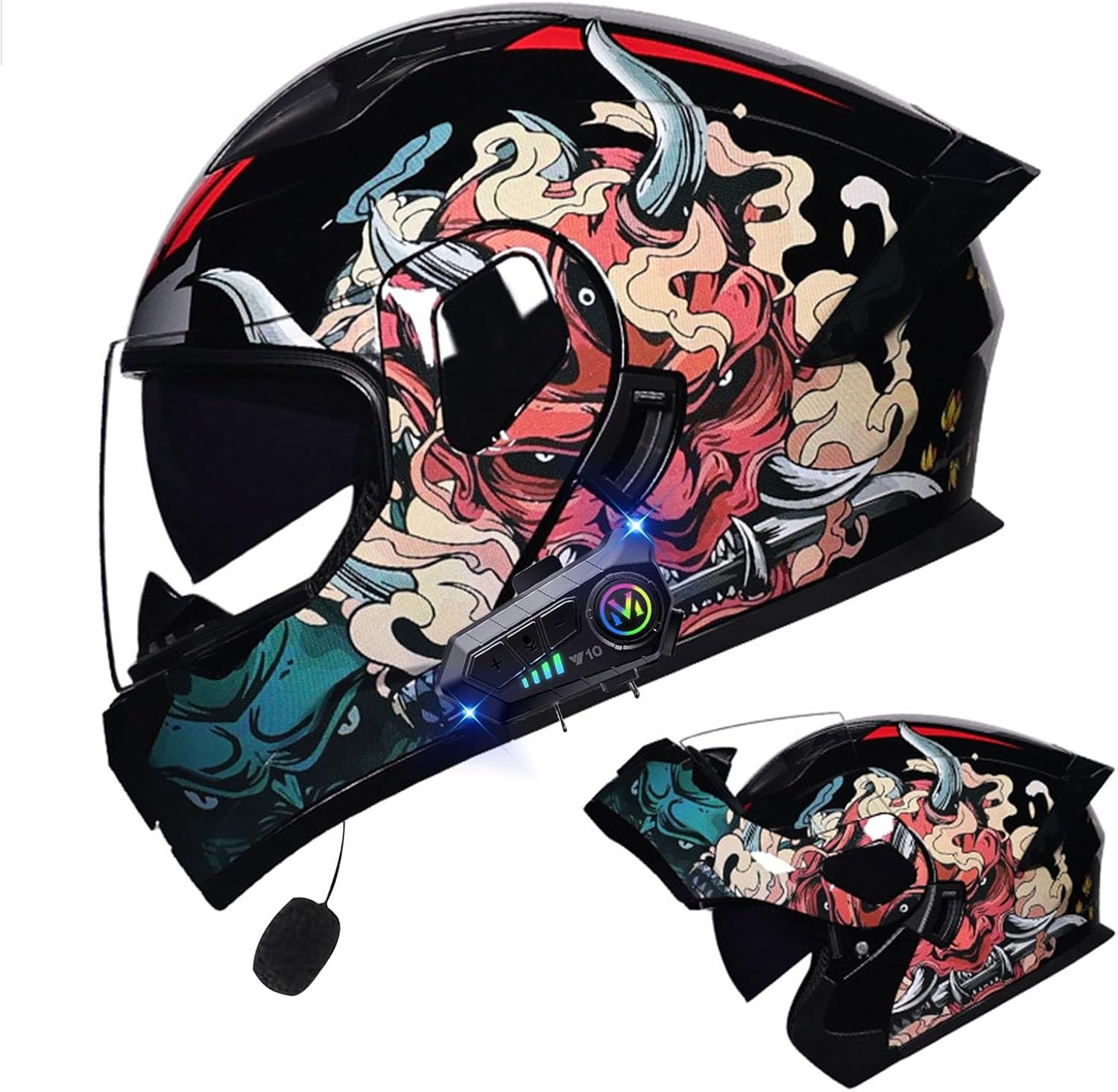 Our helmet has excellent protection. It can provide you with the greatest degree of safety when riding outdoors, so that you can enjoy riding.We are also equipped with a professional online service team to solve the problem for you the first time, so that you have no worriesIn order to protect the helmet and Bluetooth, the package you receive is Bluetooth and the helmet are packaged independently, you can choose to install or not install according to your preference. If you have any questions that you don’t understand, please feel free to contact us and we will solve it for you immediately.Product details:Type: Modular Bluetooth HelmetMaterial: Sturdy and durable ABS shellBuffer layer: High-strength EPS buffer layerWeight: 1400gSize: M (57-58cm/22.4-22.8in),L (59-60cm/23.2-23.6in) ,XL (61-62cm/24-24.4in),XXL(63-64cm/24.8~25.2in)Safety certification: DOTScope of application: Unisex Four Seasons GeneralRecommended Uses For:for motorcycle, cruiser, touring, bicycle and scooterBluetooth parameters:1. Bluetooth version:V5.3+EDR2. Transmission distance: 20M3. Lithium battery:1000mAh4. Charging time:20 min5. Standby time:18 months6. Continuous working time:about 32 hoursPackage:Motorcycle Helmet*1Bluetooth Headset Set *1If you are satisfied with my product, I hope you can give us a comment. This is important not only to me, but also to other friends who need this product.If you have any questions, please contact us in time, We will solve the problem for you within 24 hours