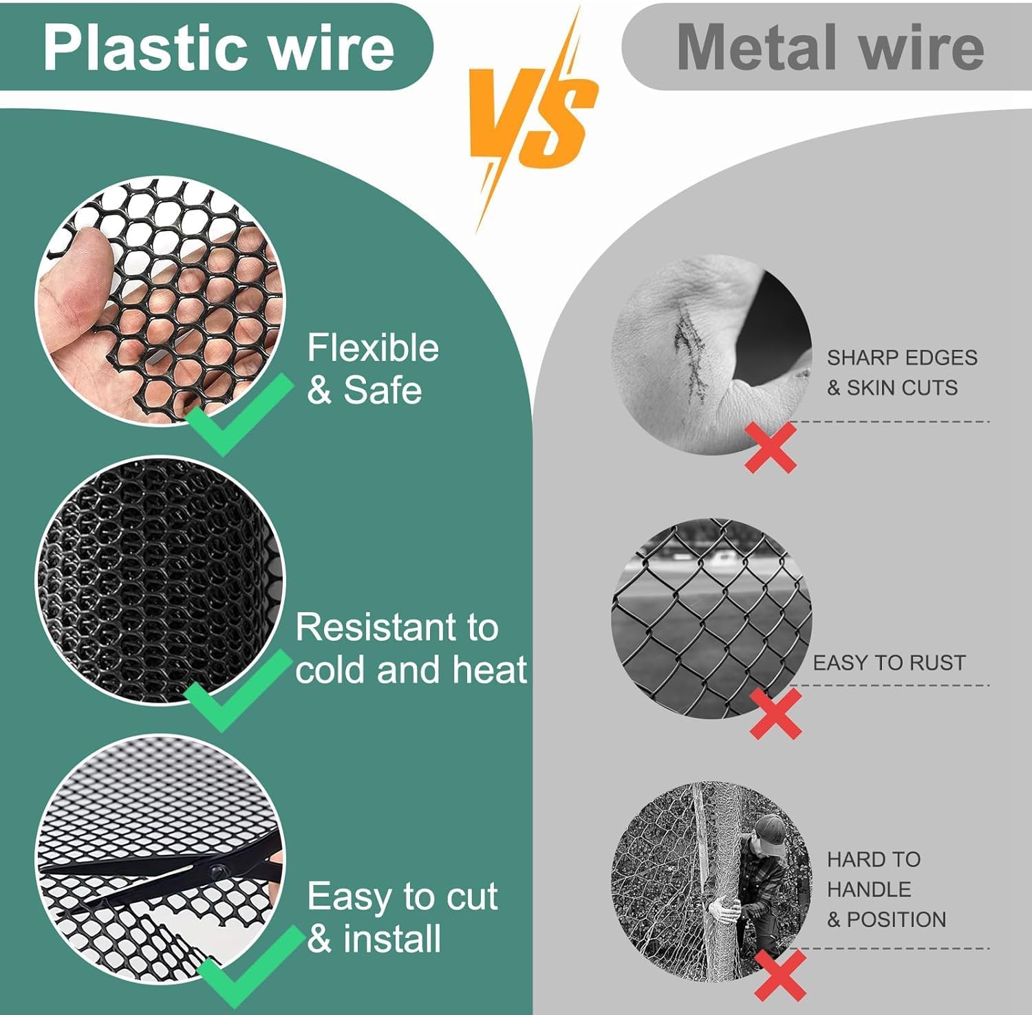 The Chicken Plastic Wire Fencing Mesh by SKWIRRLE, a reliable and high-quality garden netting solution designed for various applications. ➤Made from plastic, this fence mesh is weather-resistant and built to last. ➤It measures 15.7 inches x 50 feet, providing ample space for your pets, plants, or any other outdoor needs. ➤This fence mesh is easy to install and does not require any tools or expertise. ➤It is ideal for gardening, barrier netting, poultry, dogs, and rabbit fencing, making it a versatile addition to any outdoor area. ➤The black color of this fence mesh adds a sleek and stylish touch to any space while providing a secure and safe environment for your pets or plants. Order your Chicken Wire Fencing Mesh by SKWIRRLE today and enjoy a stylish and efficient outdoor solution.