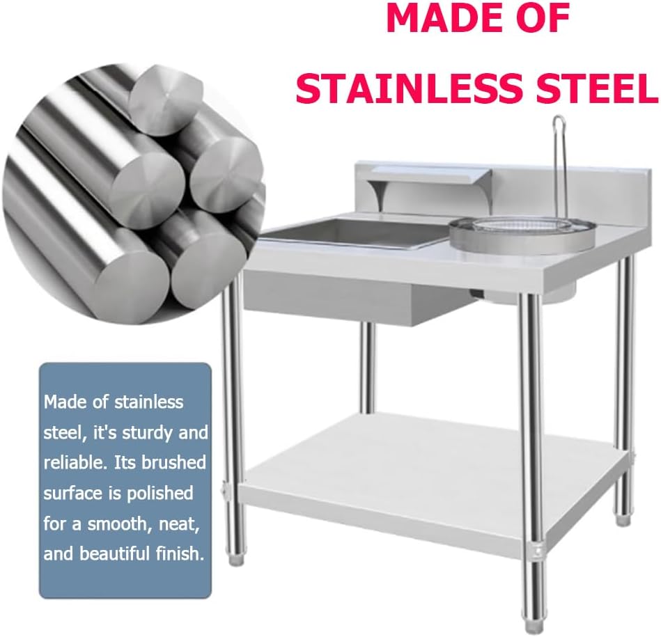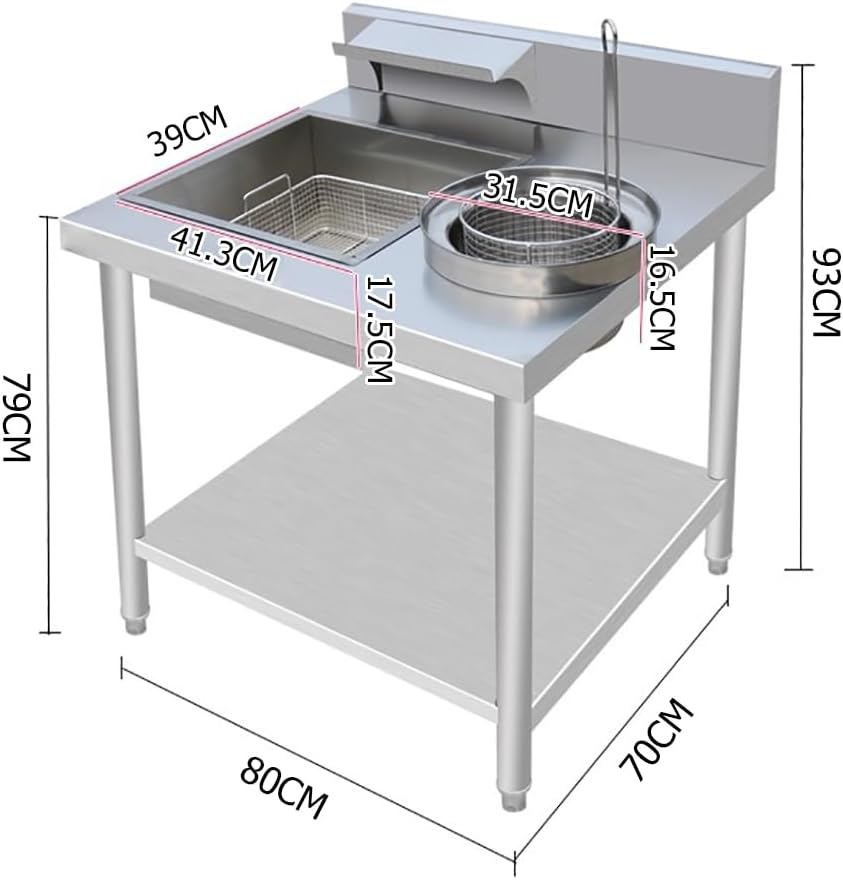 With our heavy-duty stainless steel breading station, you'll effortlessly master any frying task and expertly prepare a wide range of dishes. Its sturdy stainless steel construction ensures it withstands the rigors of daily use in a busy kitchen. Its versatile countertop design ensures increased efficiency!Color: SilverMaterial: Stainless SteelDimensions: 80/100 x 70 x 79 cmPackage Contents:Workstation x 1