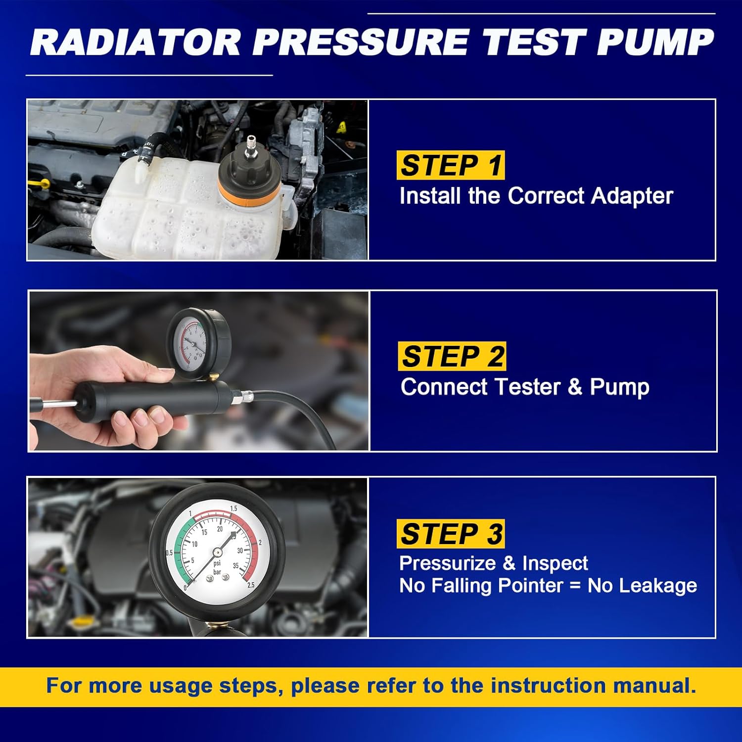| Model | DASBET 36PCS Universal Radiator Pressure Tester & Coolant Vacuum Refill Kit |