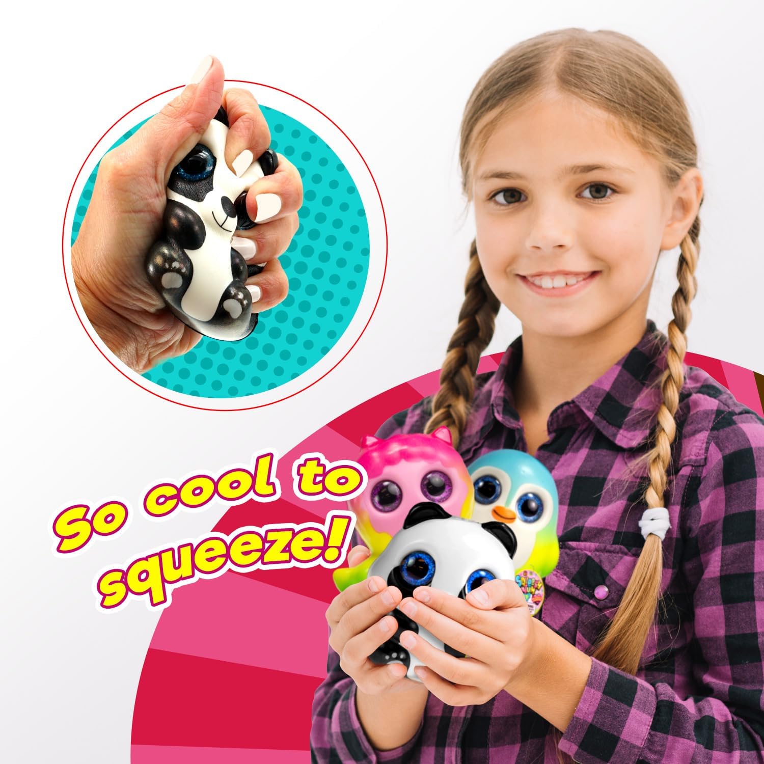 Introducing the JA-RU Squeesh Yum Squishy Jumbo Foam Animals! These adorable slow-rising squishy animals are the perfect kid's toy for hours of sensory fun. Each pack includes a variety of cute animal designs that are irresistibly squishy and soft to the touch. Collect all animal styles, Monkey, Penguin, Wolf, Pug, and Panda stress balls. Designed for stress relief and fidgeting, these squishy animals provide a calming and satisfying tactile experience. Simply give them a gentle squeeze and watch as they slowly rise back to their original shape, ready for another squeeze. This pack is also used for bulk arcade party favors and stocking stuffers. Whether you're planning a birthday party or looking for small gifts, these squishy animals will surely delight children of all ages. They also make great toys for stress relief and relaxation for adults. Made from high-quality material, these squishy animals are durable and long-lasting. They are safe for children to play with. With their cute designs and soft texture, they are sure to become instant favorites among kids and adults alike.