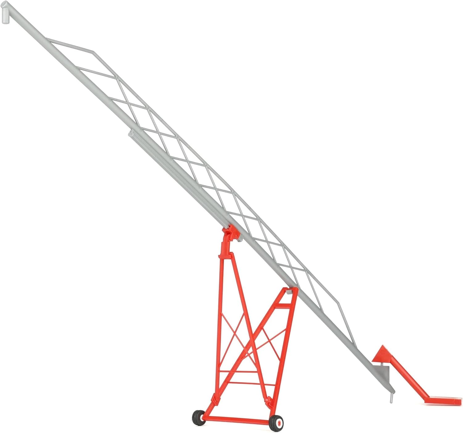 Bring realistic farm operations to your farm toy display or collection with this 1/64 scale grain auger replica, featuring authentic Mayrath-inspired colors with a red undercarriage and silver auger. This highly detailed plastic grain auger measures approximately 22 inches long. It reaches the top of a 42-foot Standi Grain Bin when used with an extra ring, and provides 11 inches of clearance at full working height, making it perfect for farm toy displays and miniature farm setups.