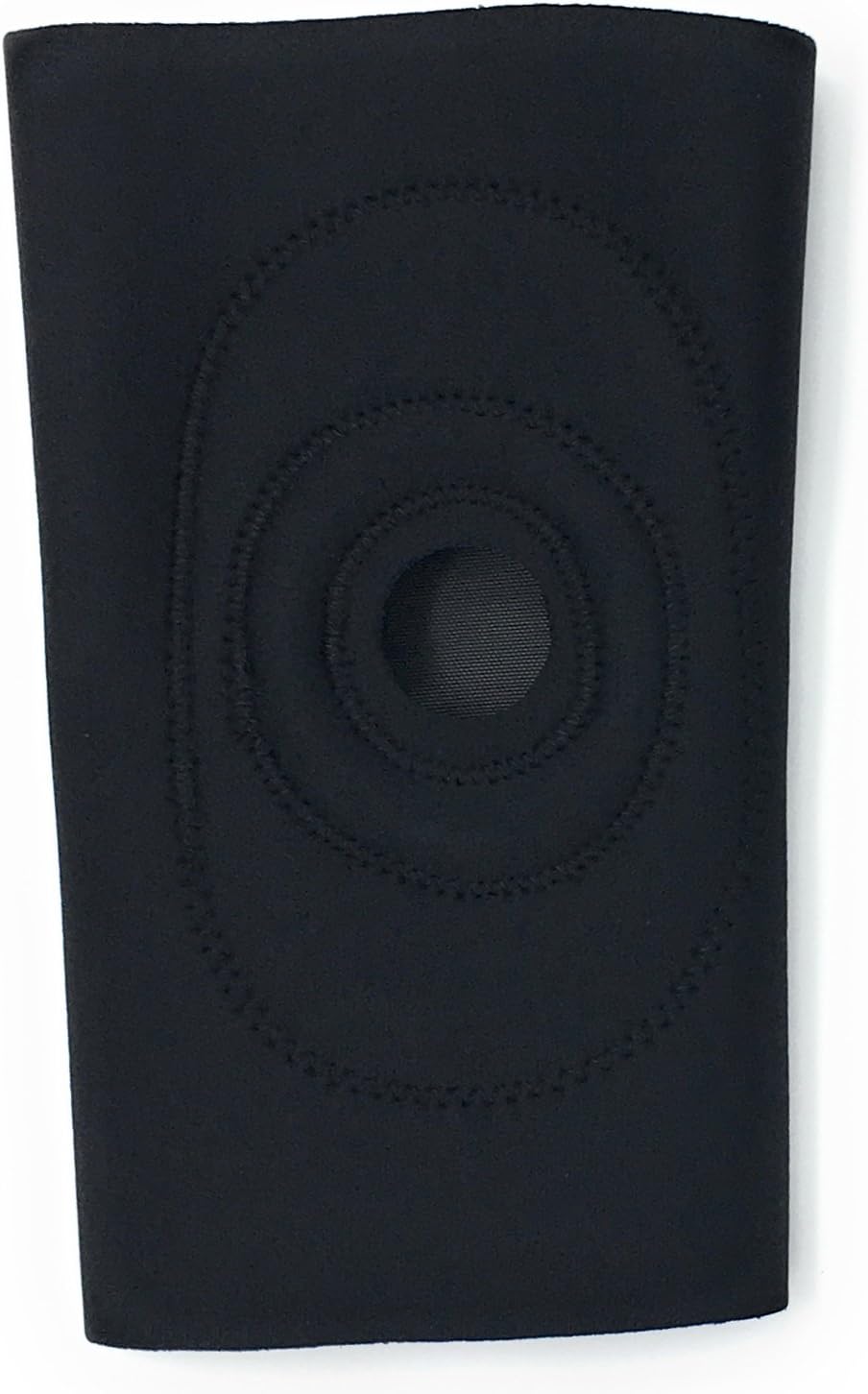 The OTC Knee Support is a unisex neoprene knee stabilizer made by OTCCare. This knee support provides good, even support over the knee joint to help stabilize and protect the patella. The multi-function neoprene material surrounds and stabilizes the kneecap while also retaining body heat, increasing circulation, and maintaining flexibility. The four-way stretch neoprene material can be cut to size through the slits on the interior pocket to target pressure over soft tissues. It has a sheer mesh elastic opening over the back of the knee for additional wearing comfort. This easy slip-on, slip-off knee support comes in black and blue and is available in sizes Small (12.5-13.75 in), Medium (14-15.25 in), Large (15.5-16.5 in), X-Large (16-17.5 in), 2X-Large (17.75-19.25 in), 3X-Large (19.5-21 in), and 4X-Large (21-24 in). Measure around the bend of the knee to find the correct size.