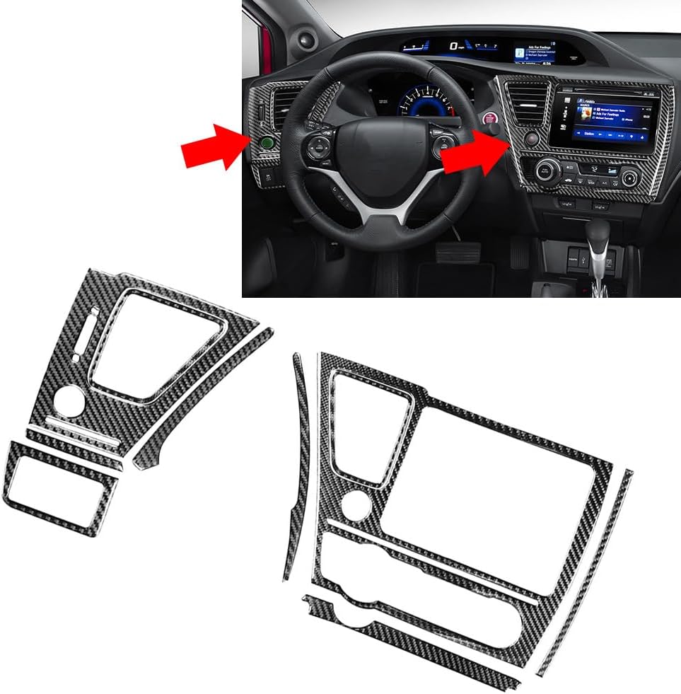 Fitment:For HONDA Civic 9th Coupe/Sedan 2013-2015Only For Left-Hand Drive Car.Specification:Material:Carbon Fiber+Epoxy Coating(Soft)Color:BlackFitment Type:Performance/CustomPlacement on Vehicle:ForntFeatures:Bring a decoration upgrade to your car.Self-adhesive tape is provided on the back. There is no need to modify it.The appearance is protected by a thick epoxy coating, which can effectively prevent hard objects from scratching, and extend the use of the car's internal functions.It can cover the scratches on the car, protect the panel from being scratched by hard objects such as nails and keys, and prolong the use of the internal functions of the car.Material: The Center Console Dashboard Cover Trim is made of Carbon Fiber, which has , weat resistance, friction resistance, fatigue resistance and low coefficient of thermal expansionpackage:10 Pcs Center Console Dashboard Cover Trim