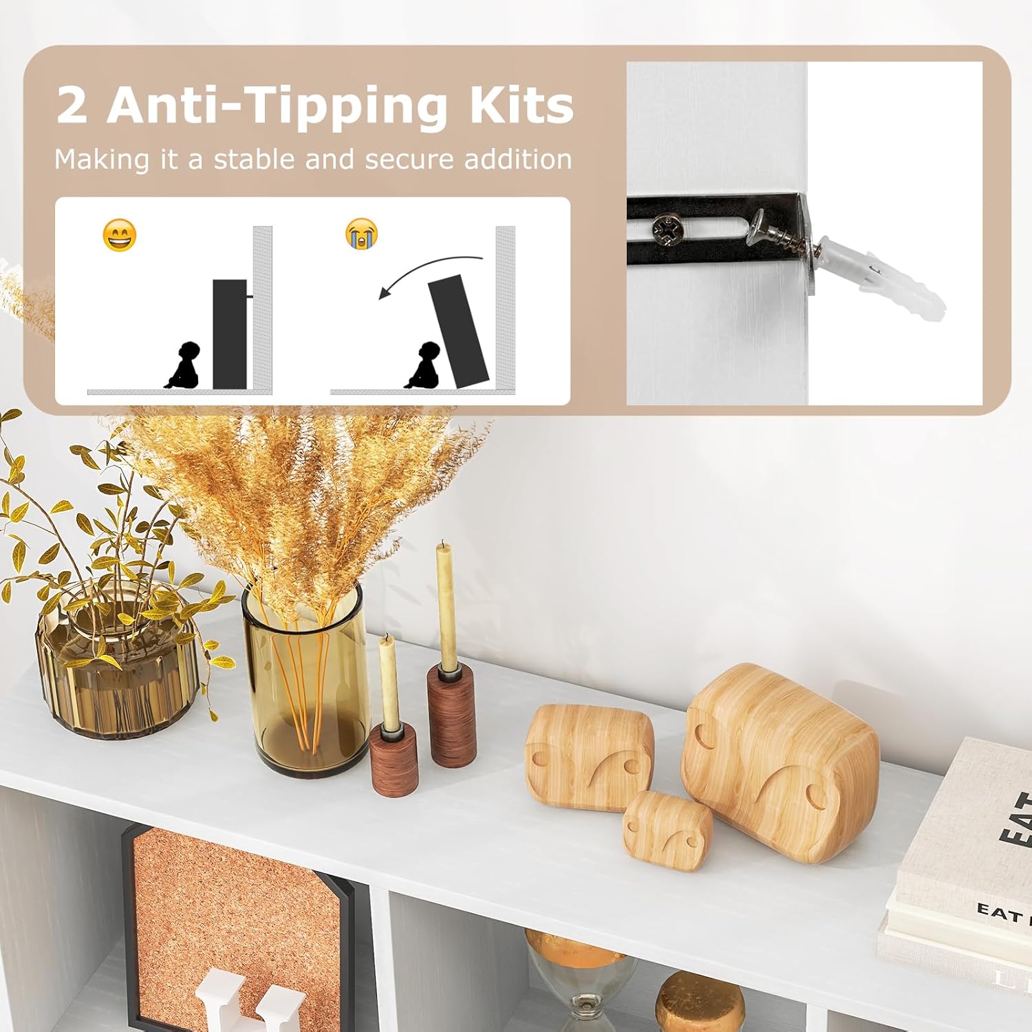 | Additional Features | 2 Anti-Tipping Kits, Cubby Design |